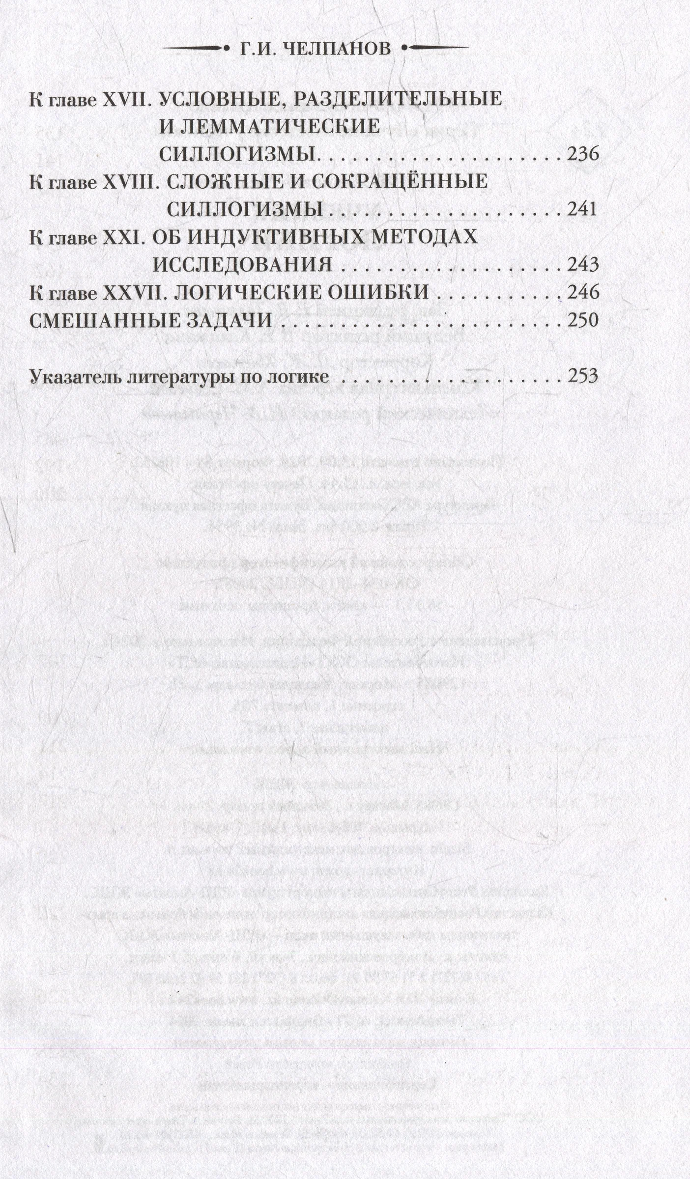 • Настоящая книга – учебник логики, написанный еще в начале XX века выдающимся психологом, логиком и философом Г. И. Челпановым (1864 - 1936) и сразу завоевавший огромную популярность (автора наградили за эту работу премией Министерства просвещения).