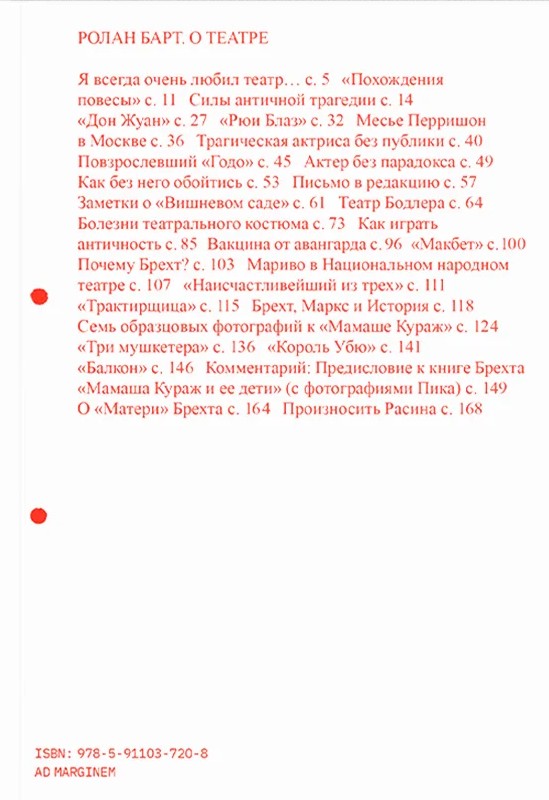 • Книга «О театре» - автор Roland Barthes (Ролан Барт), мягкий переплёт, кол-во страниц - 192, издательство «Ad Marginem»,  ISBN 978-5-91103-720-8, 2023 год