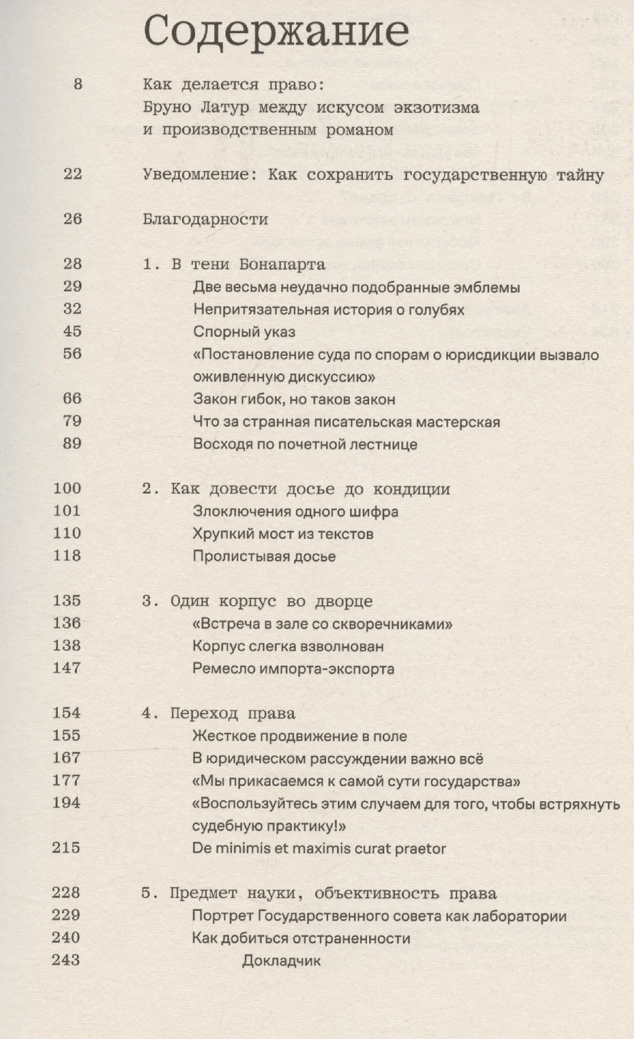 В новаторском исследовании антрополог и социолог Бруно Латур анализирует функционирование французского Государственного совета, который является частью сложной машины сдержек и противовесов, выстроенной Наполеоном Бонапартом. Наблюдение за деятельностью Госсовета позволяет понять саму суть устройства Французской Республики и права вообще.