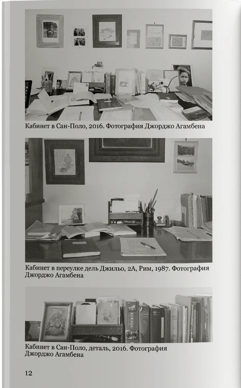 Демонстрируя своему читателю кабинеты, в которых ему приходилось работать, итальянский философ пытается выстроить свой автопортрет через находившиеся там вещи. Для Агамбена рассуждать о себе оказывается возможным только говоря о других: поэтах, философах, художниках, друзьях, которые создали его воспоминания и вдохновили его на письмо.