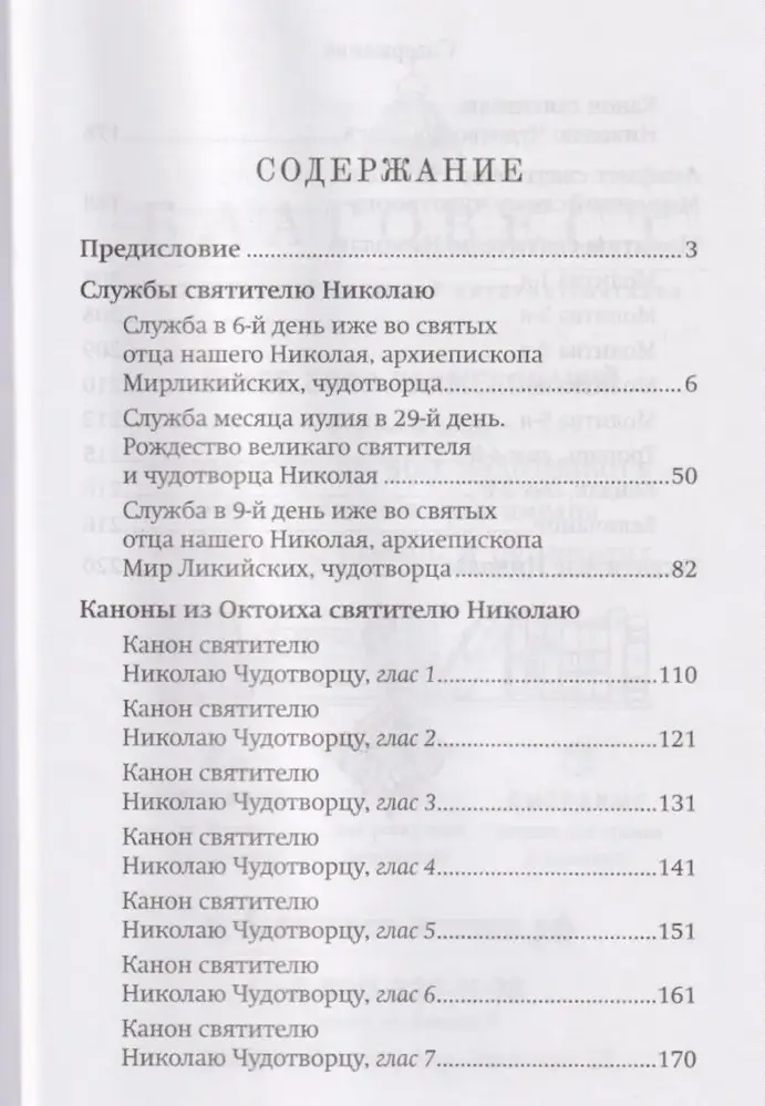 В частности, в издании приведены 3 службы в честь святителя Николая, совершаемые Церковью в течение года, в том числе, возобновленная служба празднования рождества святителя, которая совершалась ранее в нашей Церкви, но в конце 18 века была отменена.