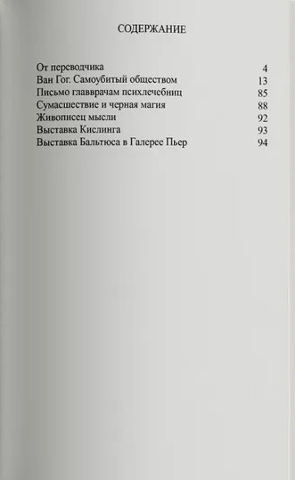 В новое издание также вошли тексты «Живописец мысли», «Выставка Кислинга» и «Выставка Бальтюса в Галерее Пьер».