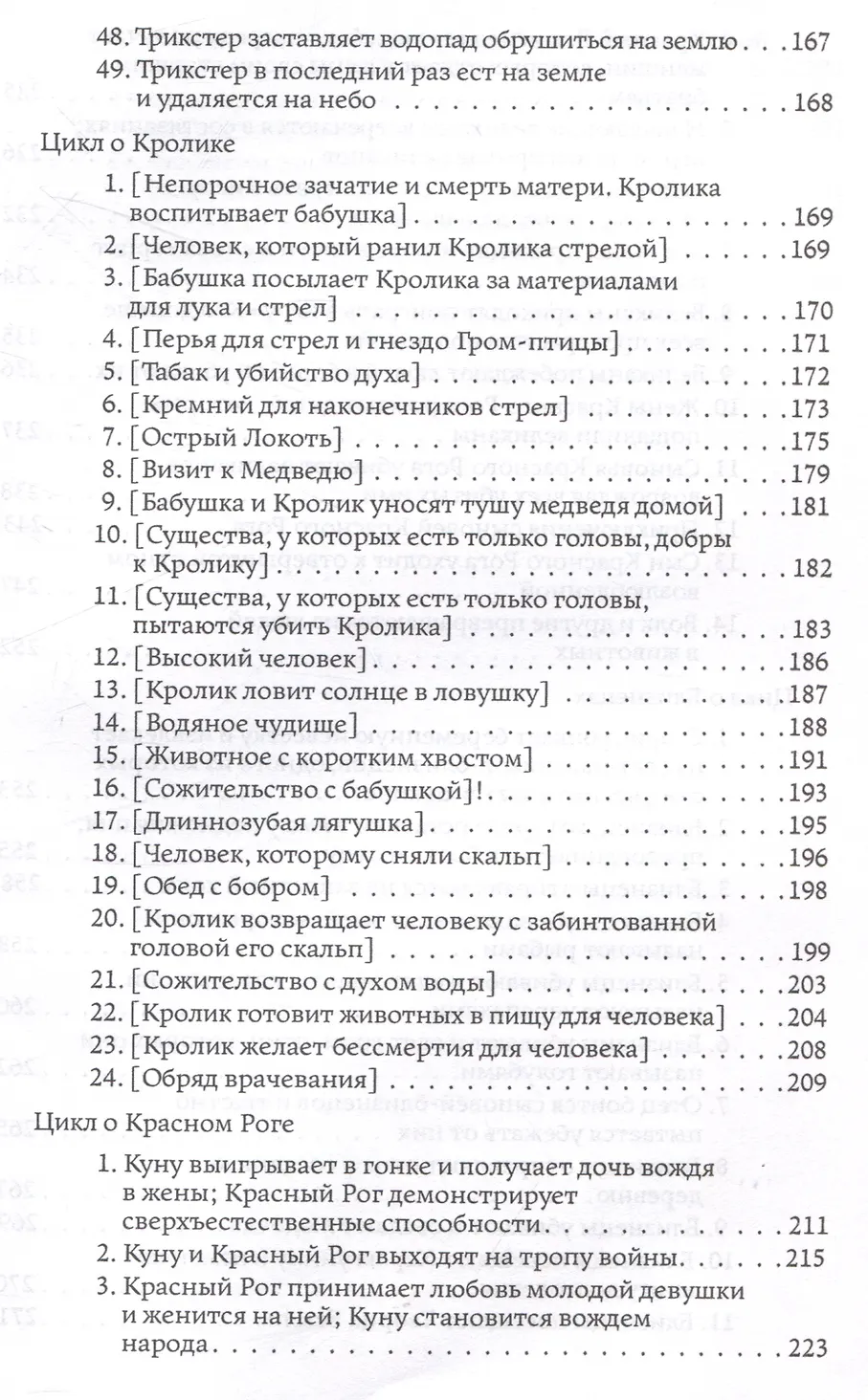 В представленной работе антрополога Пола Радина (1883- 1959) рассматриваются четыре цикла о героях североамериканских индейцев виннебаго - Трикстере, Кролике, Красном Роге и Близнецах.