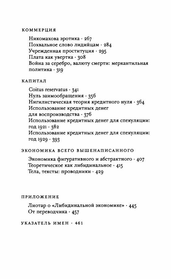 "Либидинальная экономика" (1974) - одна из трех "больших" книг философа, в которой он, реагируя на недостаточную, на его взгляд, критику капитализма в злободневном философском бестселлере "Анти-Эдип" Делёза - Гваттари, предпринимает не столько критику, сколько радикальную деконструкцию не только капитализма, но и всех его критик, начиная с Маркса и кончая Бодрийяром, и вообще любой экономики, в том числе фрейдовской или лакановской, кроме прокламируемой им экономики либидинальных интенсивностей.
