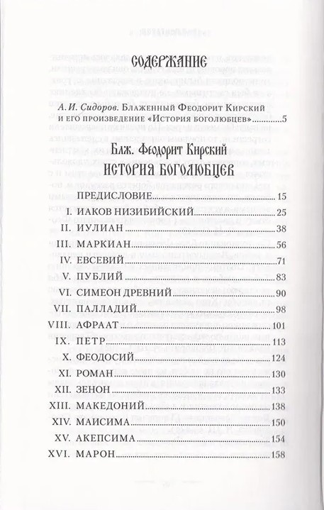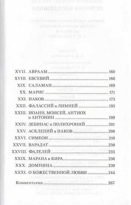 Впервые оно было переведено на русский язык полтора века назад, и этот перевод, опирающийся на весьма некачественное и неполное издание греческого текста "Истории боголюбцев", имеет множество недостатков. Представляемый ныне читателю перевод этого сочинения, снабженный комментариями, выполненными профессором МДА, доктором церковной истории А.И. Сидоровым, основывается на критическом и доброкачественном его зарубежном издании, осуществленном П. Каниве.