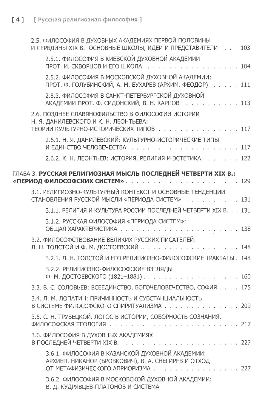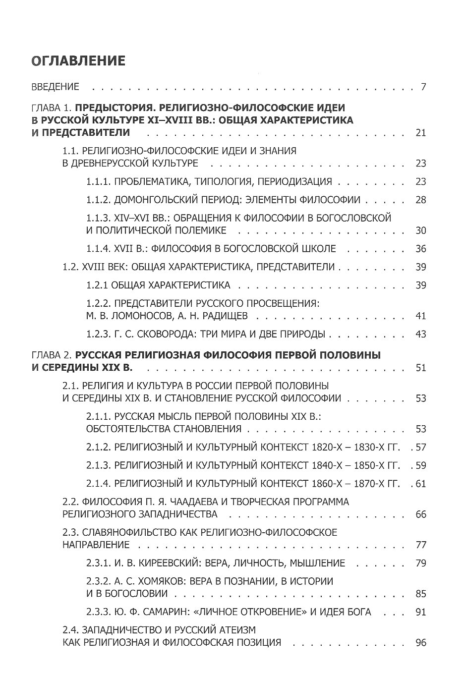 В нем рассматриваются предпосылки и предыстория становления русской мысли в Древней Руси, основные вехи ее развития в XVII и XVIII вв., русская религиозная философия первой половины и середины XIX в., "период систем" - последняя четверть XIX в., религиозно-философсктй ренессанс начала ХХ в., развитие и завершение русской религиозной философии в эмиграции и СССР.