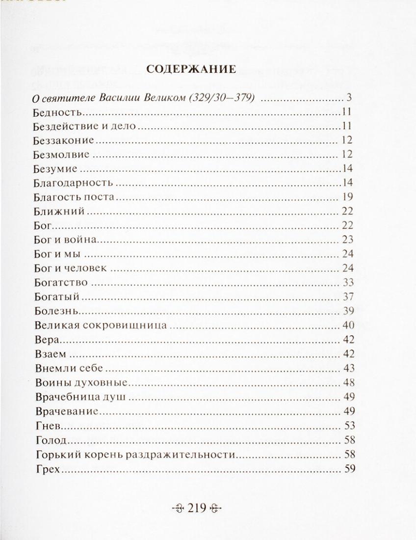 • Данная работа представляет собой сборник душеспасительных и назидательных изречений святителя Василия Великого на различные духовно-нравственные темы, взятые из его творений и расположенные в алфавитном порядке.