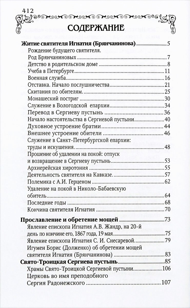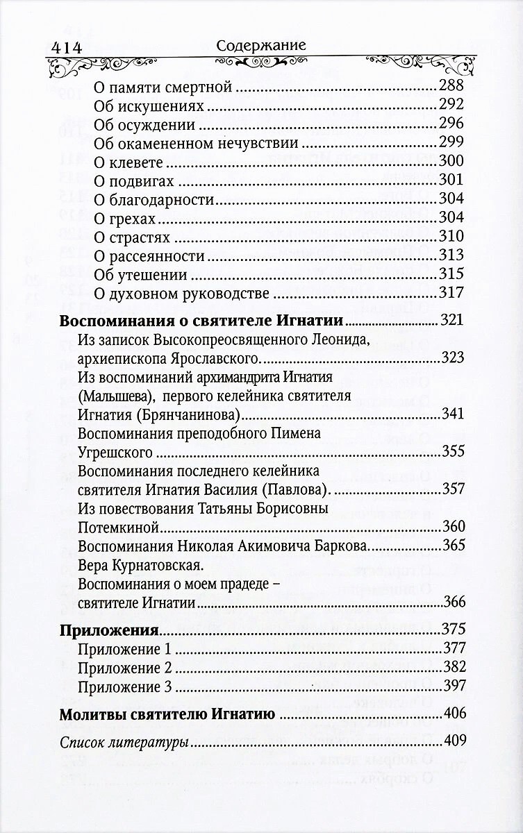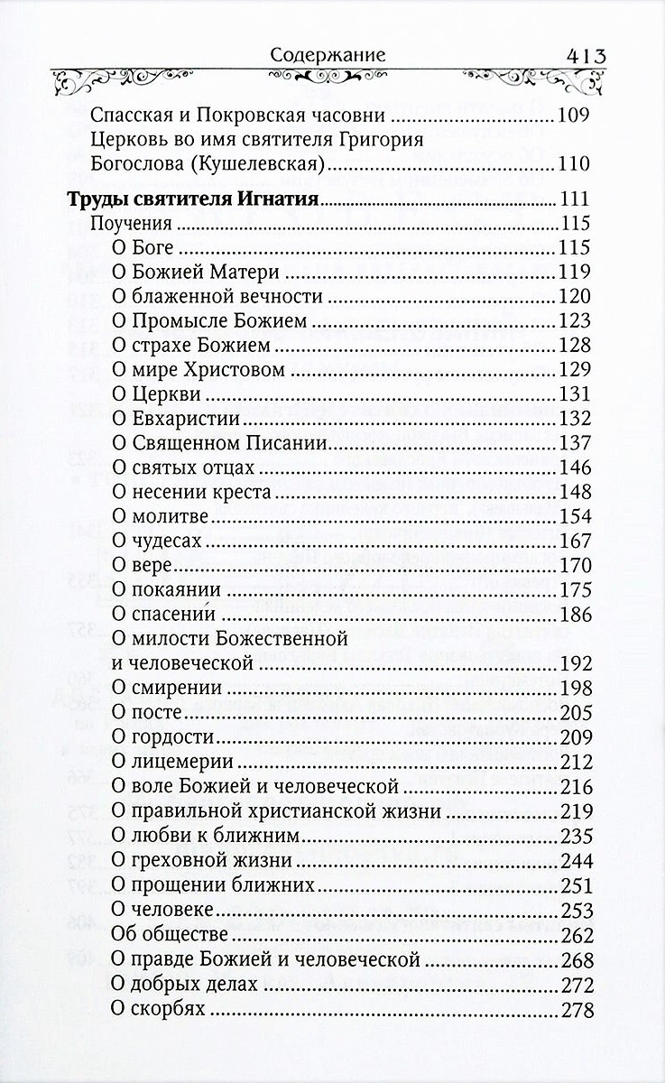 Еще одна важная часть сборника - это рассказ о трех обителях, непосредственно связанных со святителем Игнатием: Троице-Сергиевой пустыни, Николо-Бабаевском и Толгском монастырях. Также в сборнике представлены наставления святителя относительно разных вопросов христианской жизни и молитвы святому.