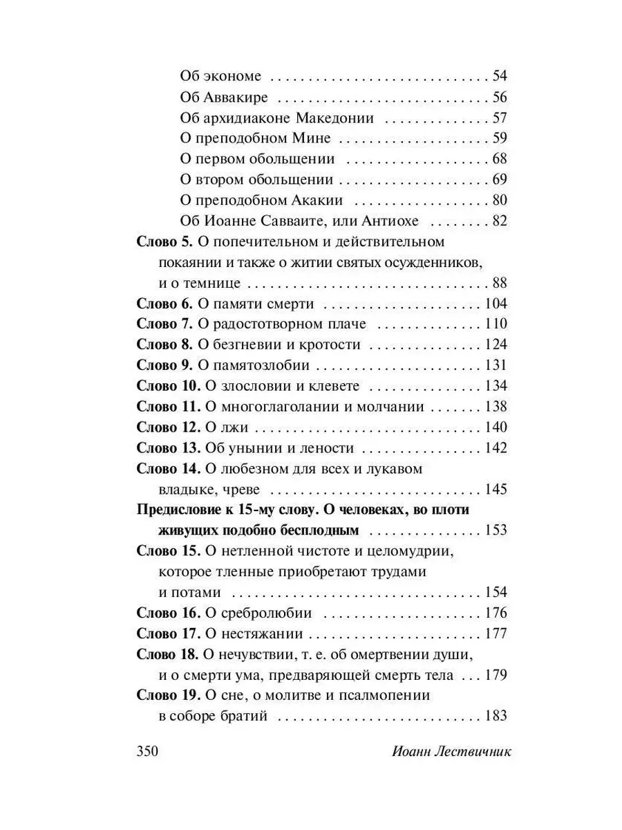 Сочинение Иоанна Лествичника состоит из 30 глав, представляющих собой «ступени» добродетелей, по которым христианин должен идти к духовному совершенству, и до сих пор рекомендуется верующим к чтению, особенно в Великий пост.ISBN978-5-17-151405-1ИздательствоГод2025Кол-во страниц352Размеры (мм.)180x114x19Тип бумагитипографскаяПереплётСерияЯзык -