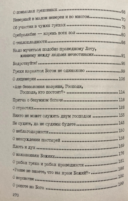 В первую книгу вошли проповеди, посвященные темам, связанным с болезнями души и тела. Во вторую книгу — проповеди, посвященные добродетелям. В третью — проповеди, посвященные борьбе со страстями.