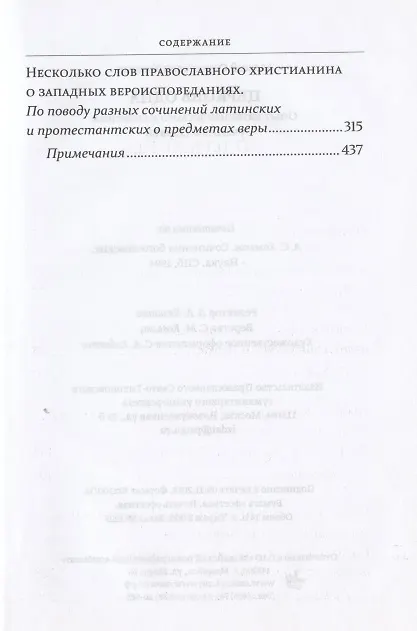 • В книгу выдающегося мыслителя А. С. Хомякова вошли основные его сочинения на богословские темы, в которых приводятся доказательства отступлений от единой христианской истины в западных вероисповеданиях (католицизме и протестантизме).