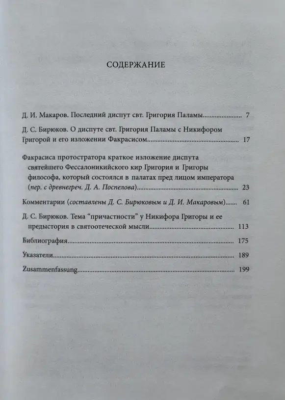 Впервые в переводе на русский язык публикуется важный памятник богословско-философской мысли эпохи паламитских споров: изложение представителем византийской чиновничьей аристократии Георгием Факрасисом диспута между свт. Григорием Паламой и интеллектуалом Никифором Григорой (Константинополь, 1355 г.).
