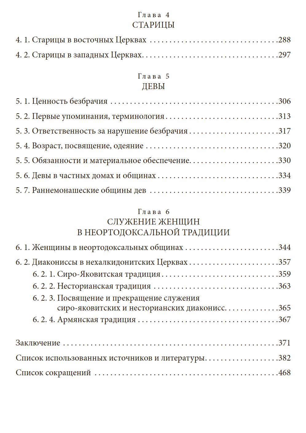 На основании широкого круга письменных и эпиграфических источников рассмотрены статус и служение разных групп женщин в Древней Церкви на территории Средиземноморья: пророчиц, вдов, диаконисс, стариц и дев, а также женщин в неортодоксальных общинах и нехалкидонитских церквах.