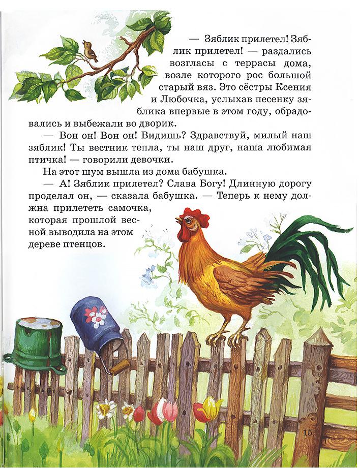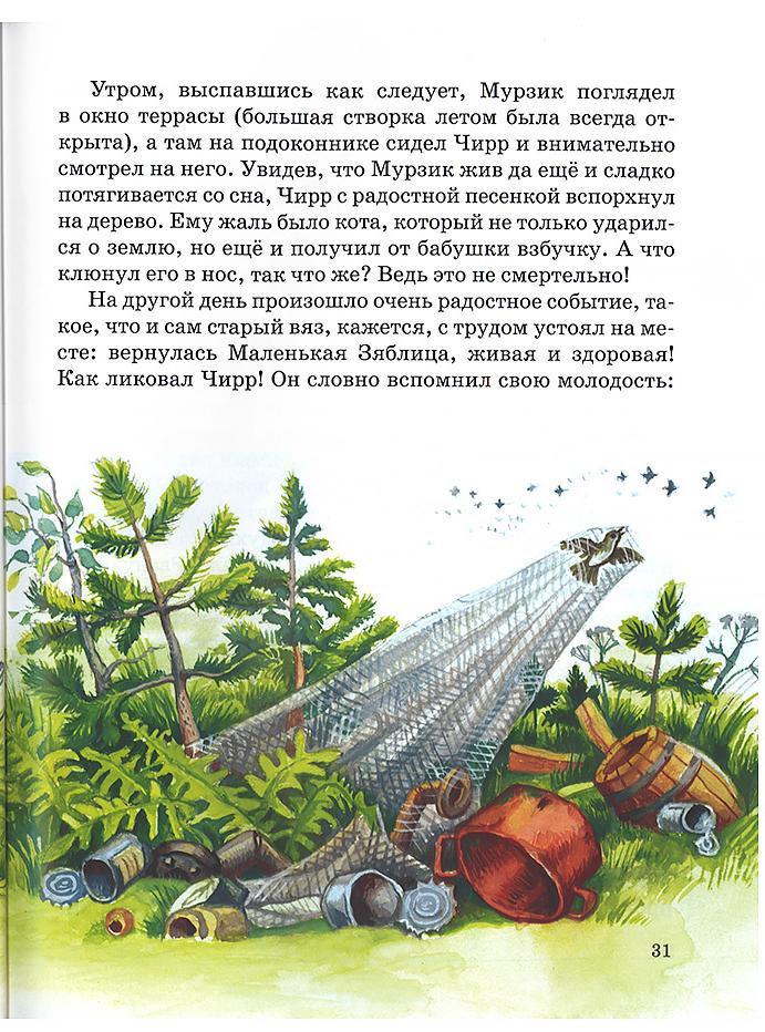 История, рассказанная монахом Лазарем, знакомит юных читателей с маленькой птичкой — зябликом Чирром. Ребят ждут интереснейшие приключения зябликов, встреча с мудрым петухом Петровичем, с ласковым и добрым щенком-озорником Буяном, с немного заносчивым, но очень храбрым котом по кличке Мурзик.