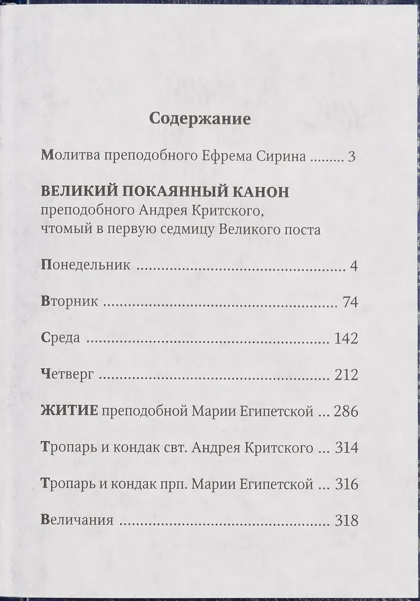 Также в издании помещено Житие преподобной Марии Египетской, которое читается при полном исполнении канона в четверг пятой недели Великого поста.ISBN978-985-7311-11-8ИздательствоГод2023Кол-во страниц318Размеры (мм.)120х80х10Тип бумагиофсетнаяПереплётЯзык -