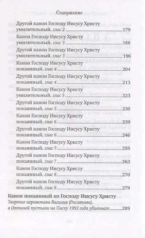 В данное издание включены используемые в церковной и домашней молитвенной практике покаянные каноны, которые взяты из молитвословов, Октоиха и постной Триоди, в том числе Великий покаянный канон святого Андрея Критского. Кроме того, в сборник помещен покаянный канон иеромонаха Василия (Рослякова), убиенного на Пасху 1993 года в Оптиной Пустыне.