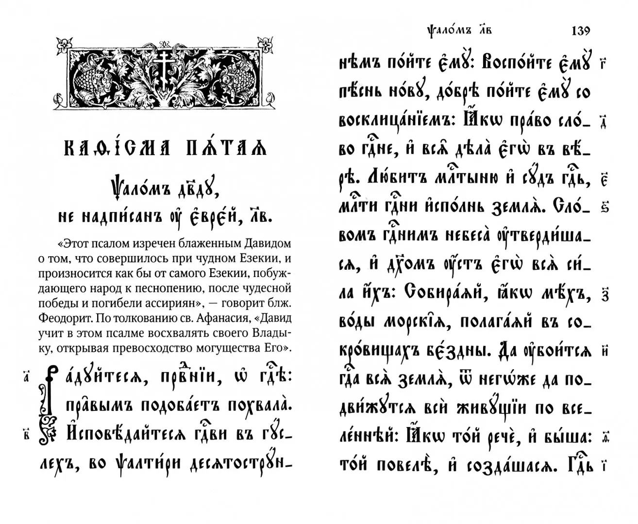 Перед каждым псалмом помещено его краткое святоотеческое толкование.