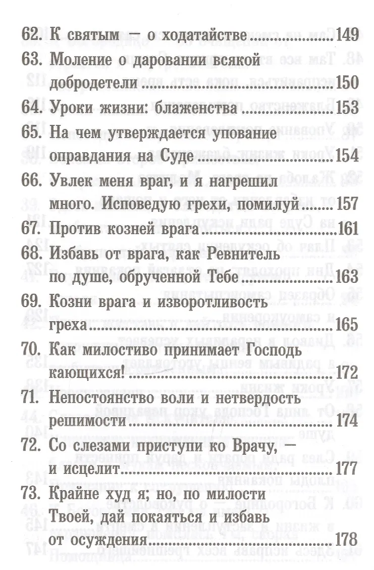 Мерой числа выбранных статей сего св. отца послужило число псалмов в Псалтири, а указателем содержания – содержание псалмов. Каждая избранная молитва несет в себе догмат, историю, нравоучение.