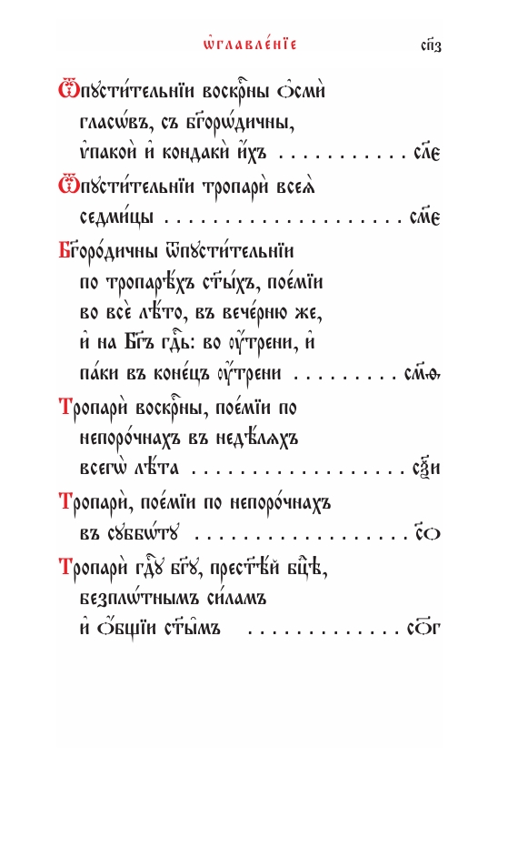 Полностью изложено малое повечерие. Кафизма 17-я напечатана основным кеглем. В раздел «Отпустительнии воскресны осми гласов» добавлены ипакои, гласы орнаментально выделены для более удобного наxождения нужного молитвословия. Добавлен раздел «Тропари Господу Богу, Пресвятей Богородице, бесплотным Силам и общии святым» с тропарями общими новомученикам и исповедникам Российским.
