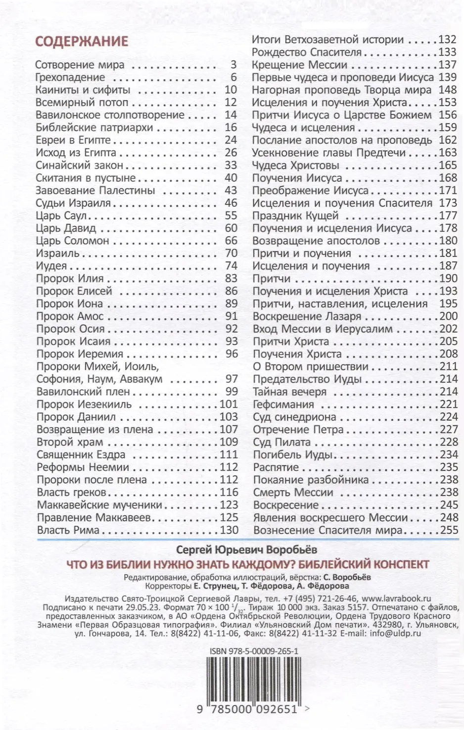 Книга Сергея Воробьева «Что из Библии нужно знать каждому?» содержит краткое изложение основных библейских событий от Сотворения мира до Вознесения Господа Иисуса Христа с объяснением и раскрытием их великого смысла, согласно толкованиям святых отцов Церкви.