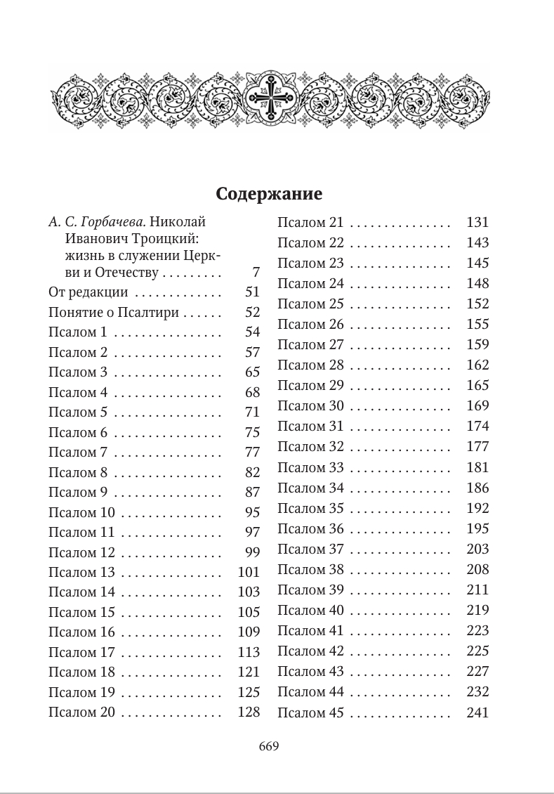 • В книге содержится толкование на церковнославянский текст Псалтири, составленное Николаем Ивановичем Троицким (1851–1920), богословом, библеистом, специалистом в области церковной археологии, многие годы преподававшим в духовных учебных заведениях.