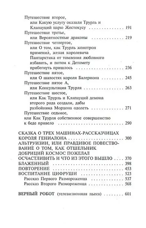 Главные герои этих рассказов и повестей – кибернетические ученые-изобретатели Трурль и Клапауций, вечные соперники, выясняющие, кто из них лучший творец во Вселенной. Сконструированные ими машины чрезвычайно упрямы, капризны, опасны и непредсказуемы, и потому наши ученые постоянно попадают в ловушки, из которых не так-то просто выбраться.