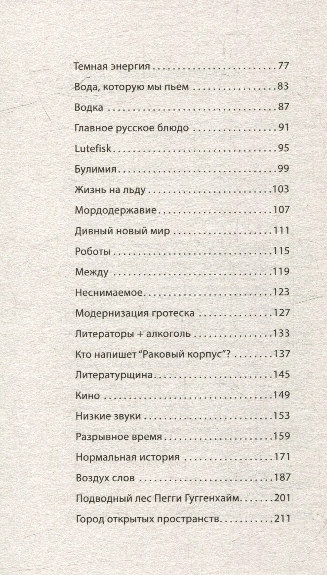 В нехудожественной прозе автор не изменяет любимым темам: еда и питье как проявления национального характера, Москва и Берлин, взаимопроникновение жизни и литературы. Из небольших заметок вырисовывается сотканный из деталей cтиля и быта точный портрет двухтысячных, неумолимо становящихся прошедшей эпохой.