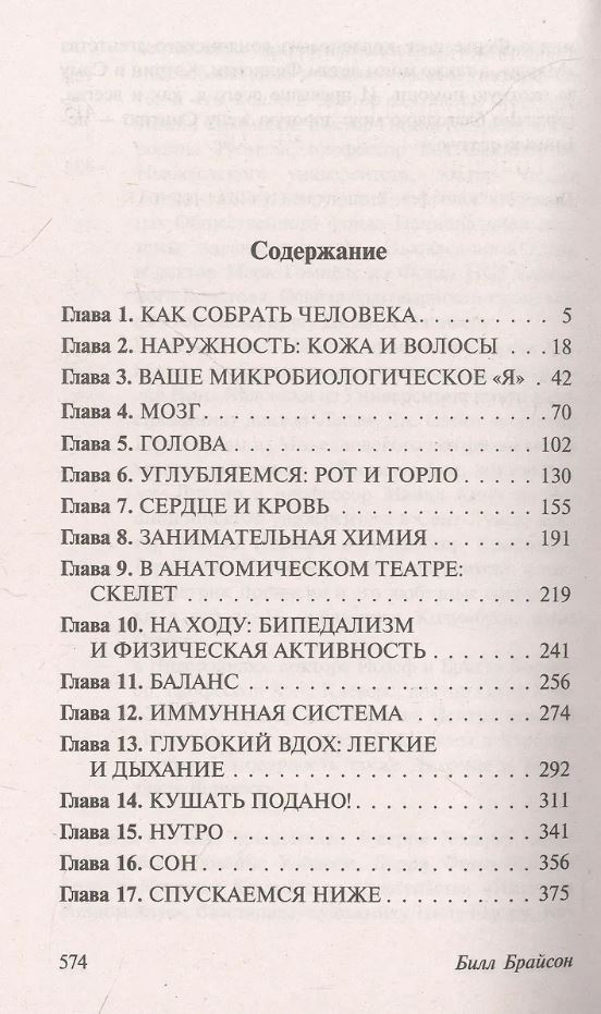 Автор приглашает на захватывающую экскурсию по чудесам и достопримечательностям нашего "внутреннего космоса". Простым и доступным языком, с помощью исторических анекдотов и парадоксальных фактов Брайсон наглядно показывает, как устроено человеческое тело, объясняет принципы, по которым оно работает, и причины, по которым начинает сбоить.