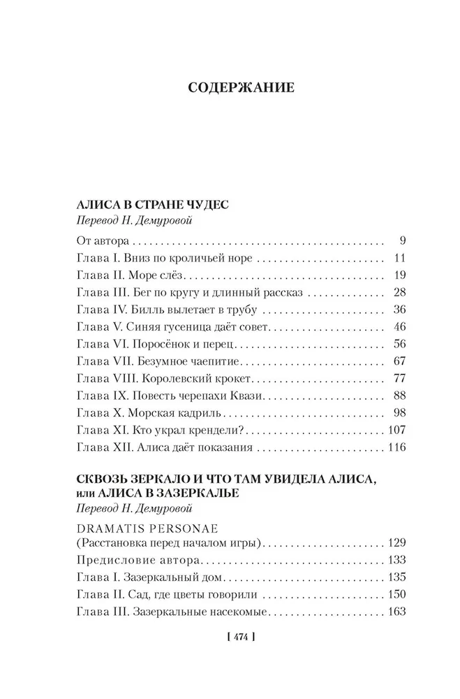 В настоящий сборник вошли полные логических парадоксов сказки об Алисе в классическом переводе Нины Демуровой, включая главу «Шмель в парике», изъятую самим автором из первого издания «Алисы в Зазеркалье», с иллюстрациями Джона Тенниела и исполненная нонсенса и абсурда юмористическая поэма «Охота на Снарка» в переводе Григория Кружкова с иллюстрациями Генри Холидэя. А также всеми любимый пересказ «Алисы» от Бориса Заходера, мир которой очень правдоподобно изобразил замечательный художник Геннадий Калиновский.