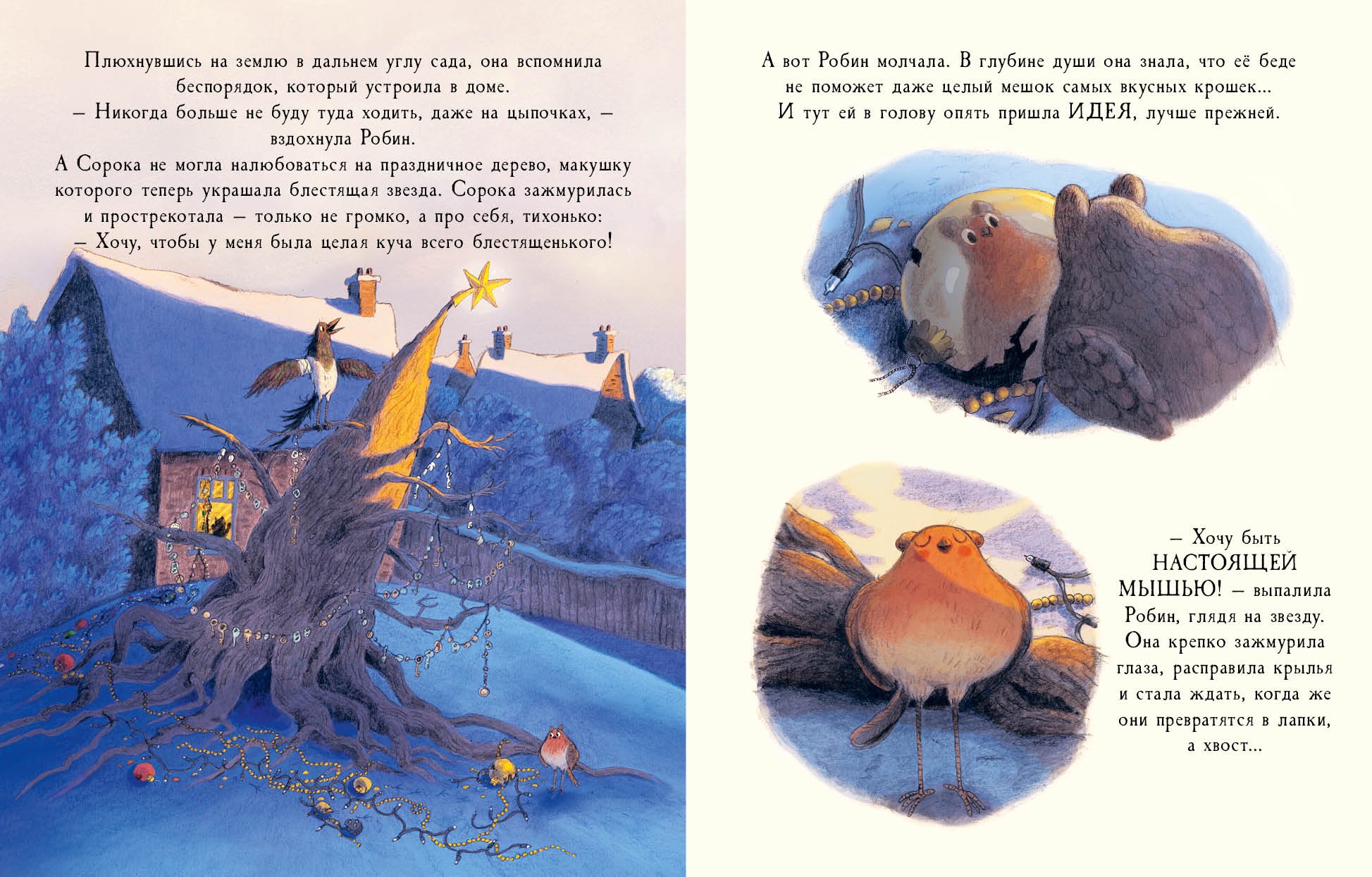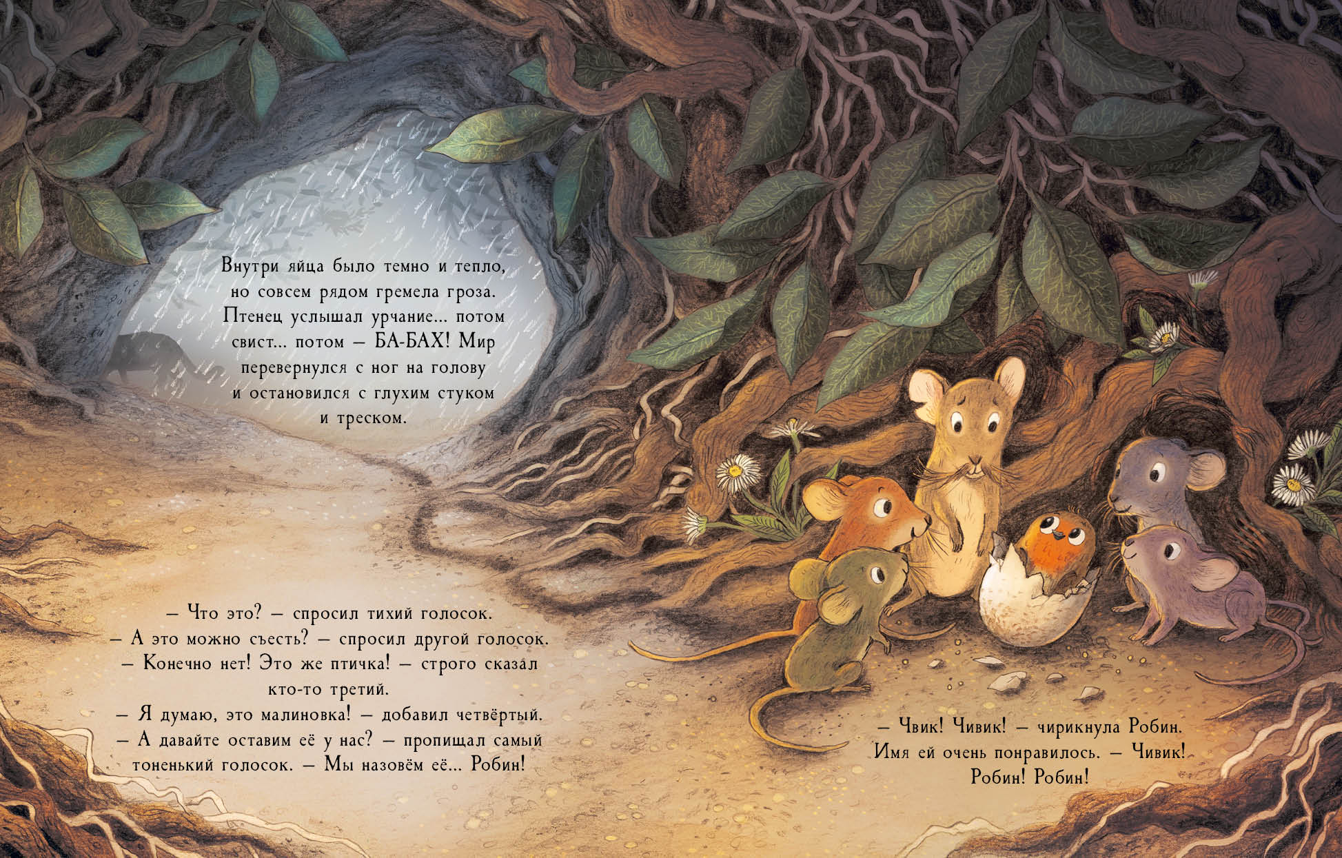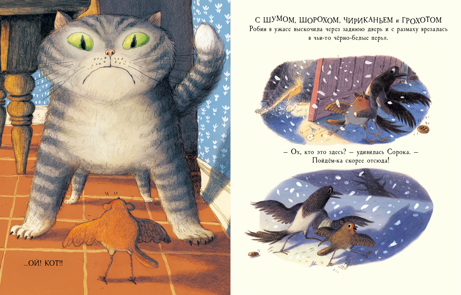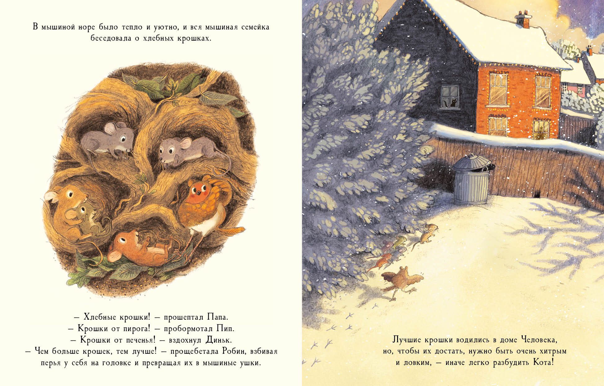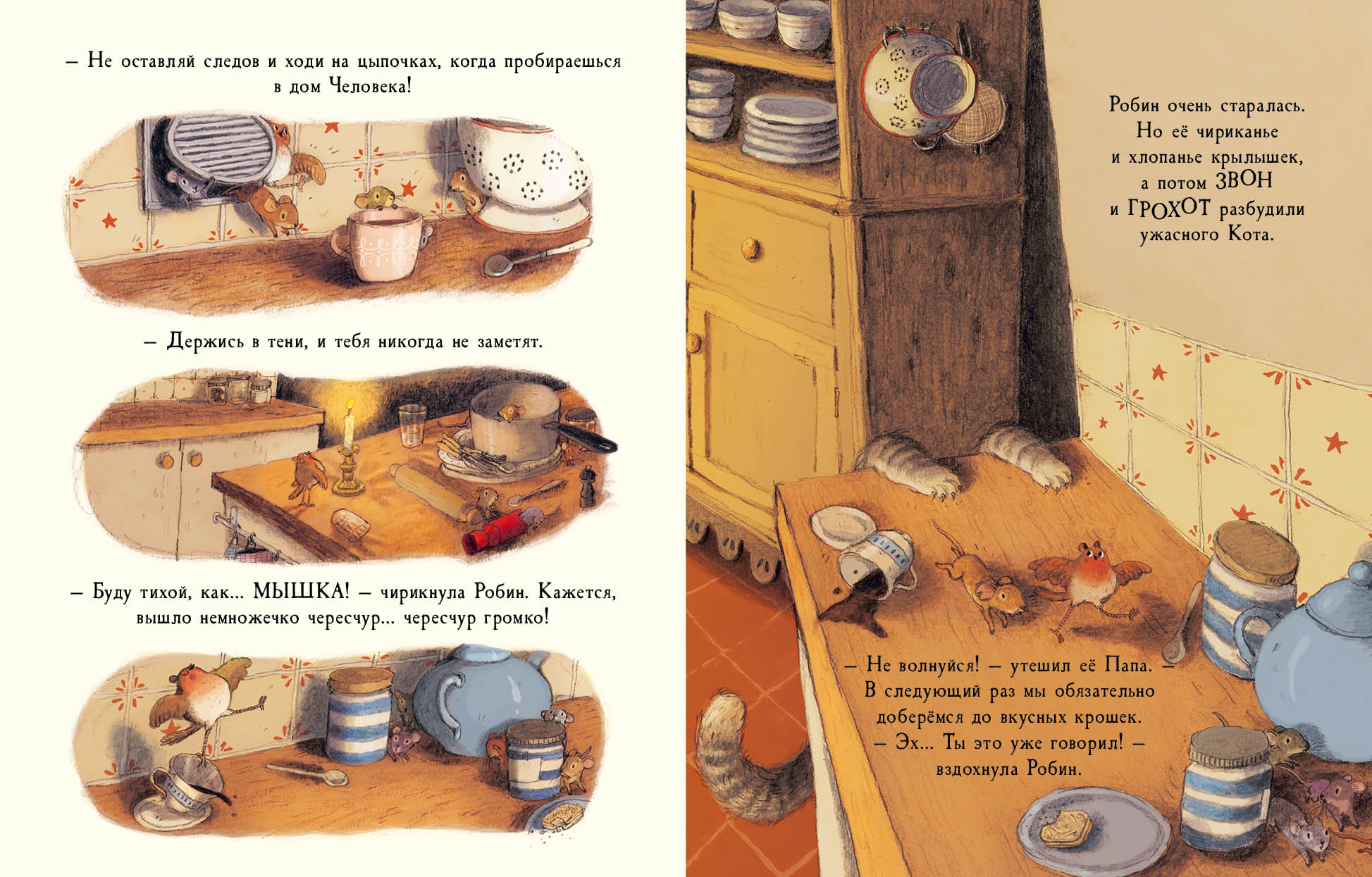 Малиновка Робин так хочет быть похожей на мышек, что даже делает себе из перьев маленькие ушки. Но ничто не может помочь шумной и довольно неуклюжей птичке незаметно таскать со стола вкусные крошки... особенно когда страшный Кот выходит на охоту!