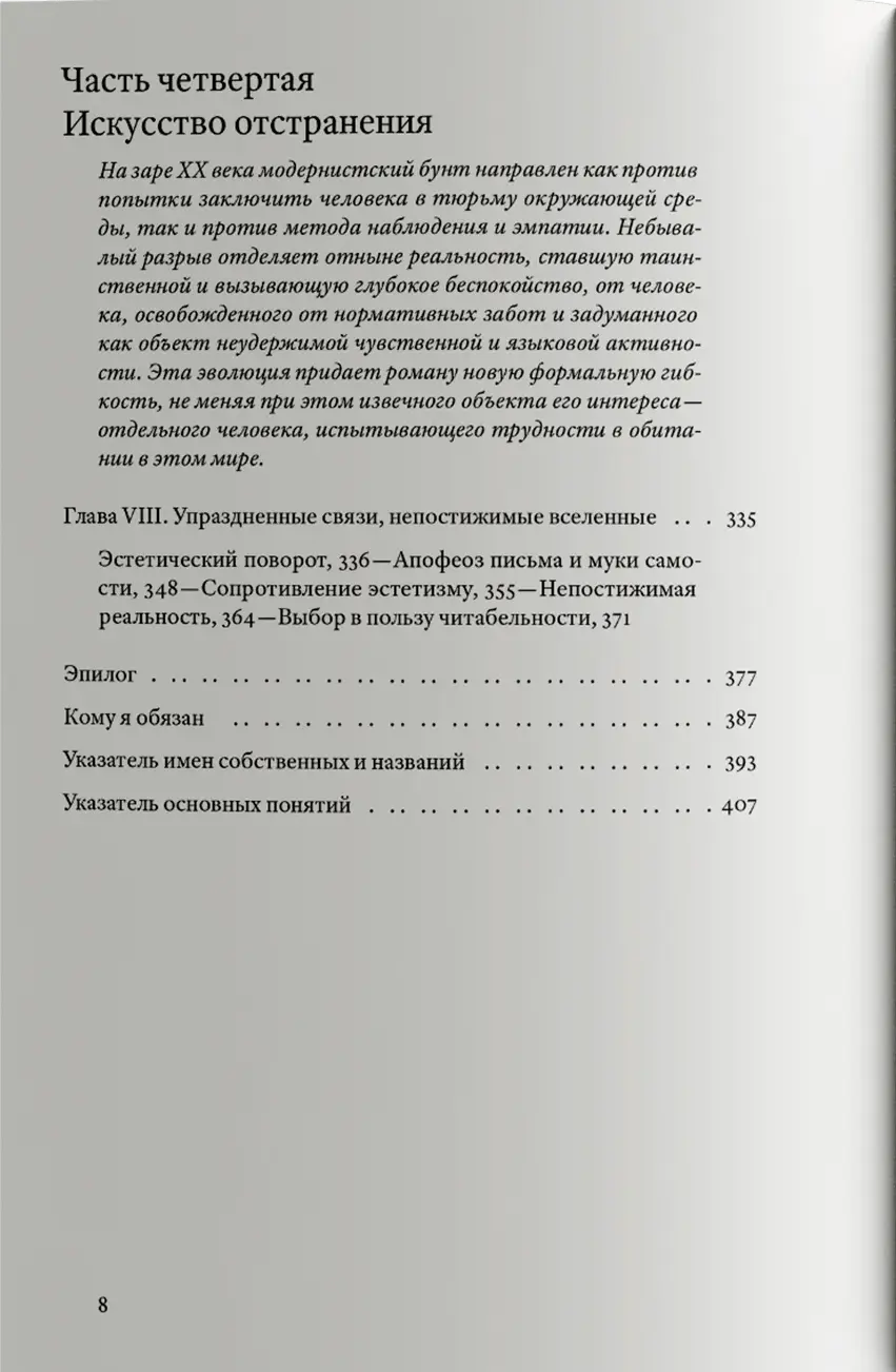 По мысли автора, эволюцию романа определяет заключенное в нем напряжение. Совмещая различные подходы к изучению литературы, Павел показывает внутреннюю логику становления жанра и диалог, который романы «вели» друг с другом, — он раскрывает преемственность между идеализмом Античности и Средневековья, реализмом Нового времени и культивирующим форму и субъективность модернизмом XX–XXI веков.