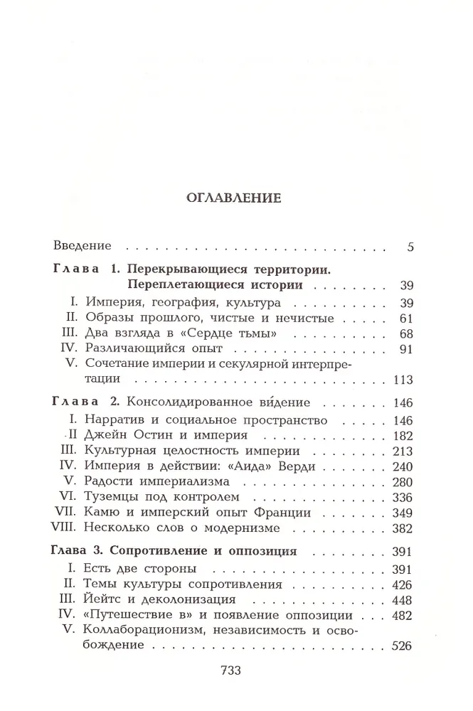 Саид отслеживает, как образы власти, имперского пространства и жителей колоний переплетаются на страницах произведений таких авторов, как Джейн Остин, Джозеф Конрад, Редьярд Киплинг, Даниель Дефо, Чарльз Диккенс, Франсуа Шатобриан, а также в опере «Аида» Джузеппе Верди.