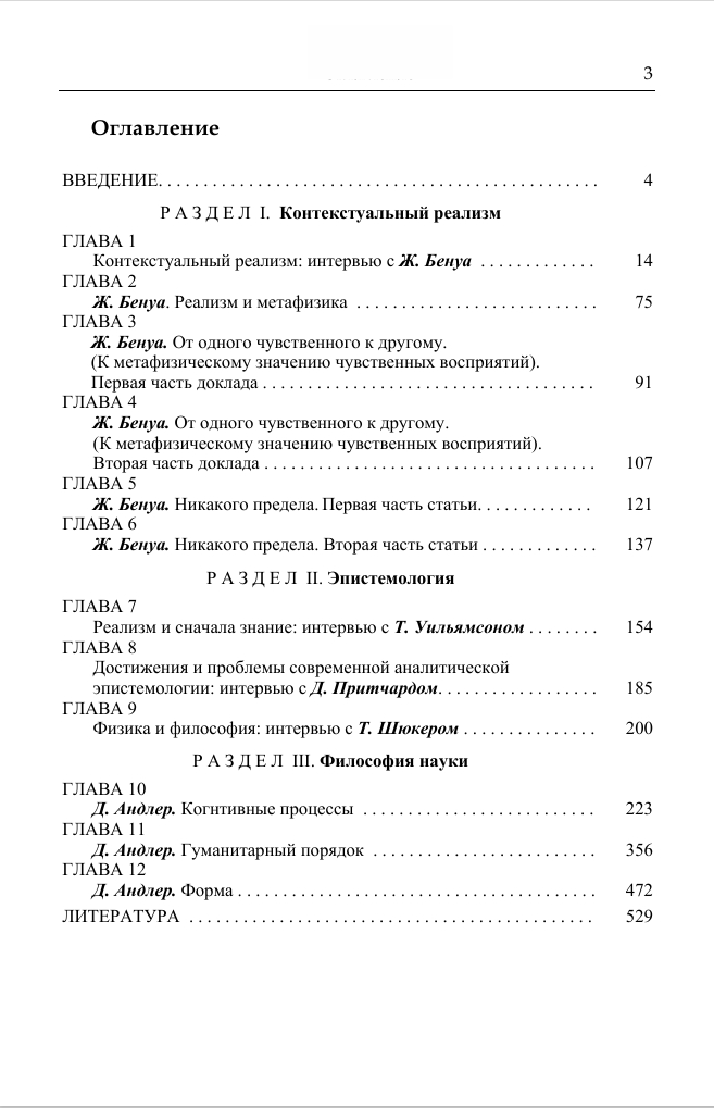 Такой новой философией является контекстуальный реализм. Именно с точки зрения этой концепции были проведены интервью с Ж. Бенуа, Д. Притчардом, Т. Уильямсоном и Т. Шюкером.