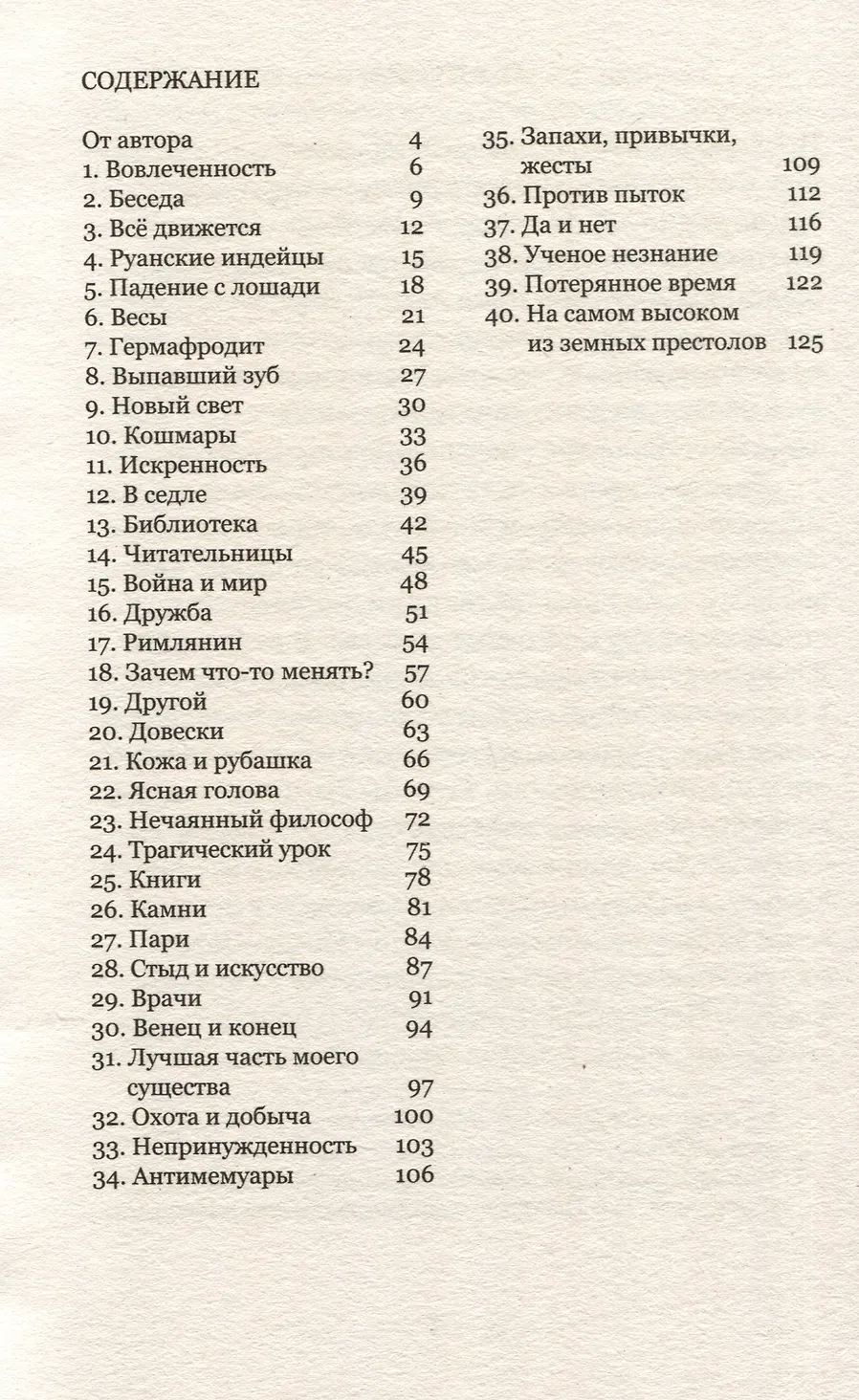 Книга Лето с Монтенем, составленная из текстов этих передач, вышла во Франции год спустя и стала бестселлером. Беспечно прогуливаясь по причудливому и необозримому пейзажу Опытов, как по родному городу, Компаньон передает нам — своим спутникам — удовольствие узнавания его памятников и курьезов.