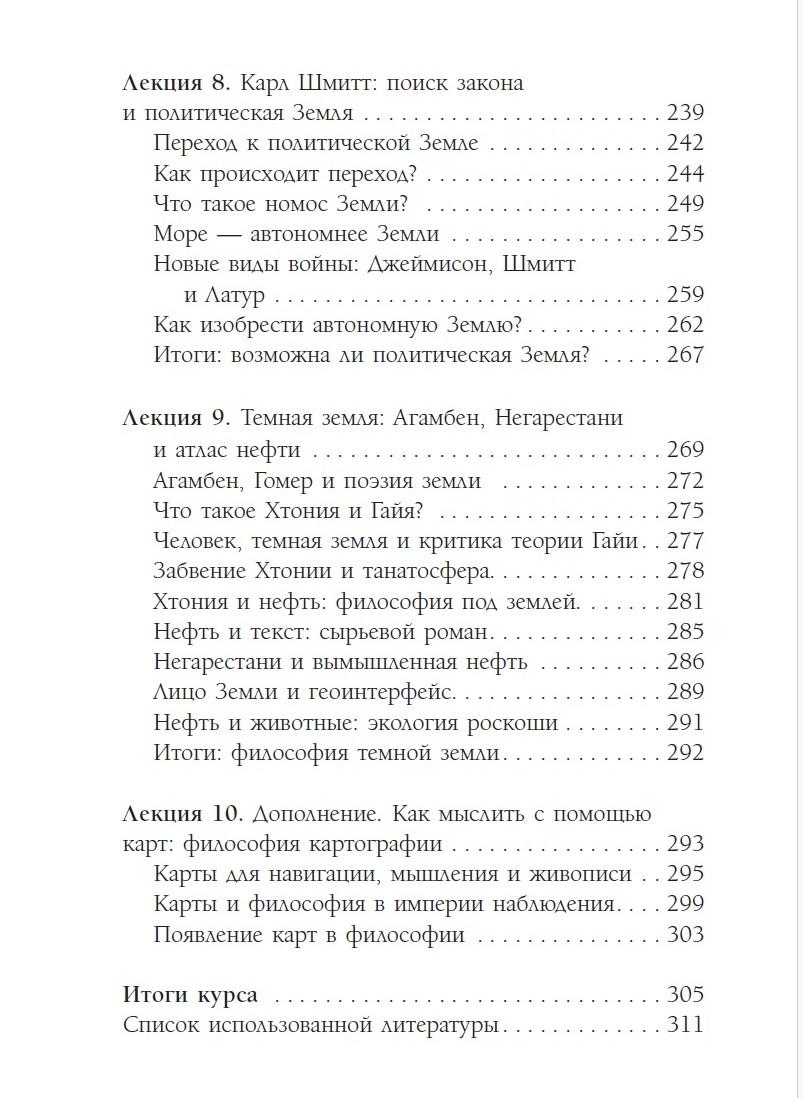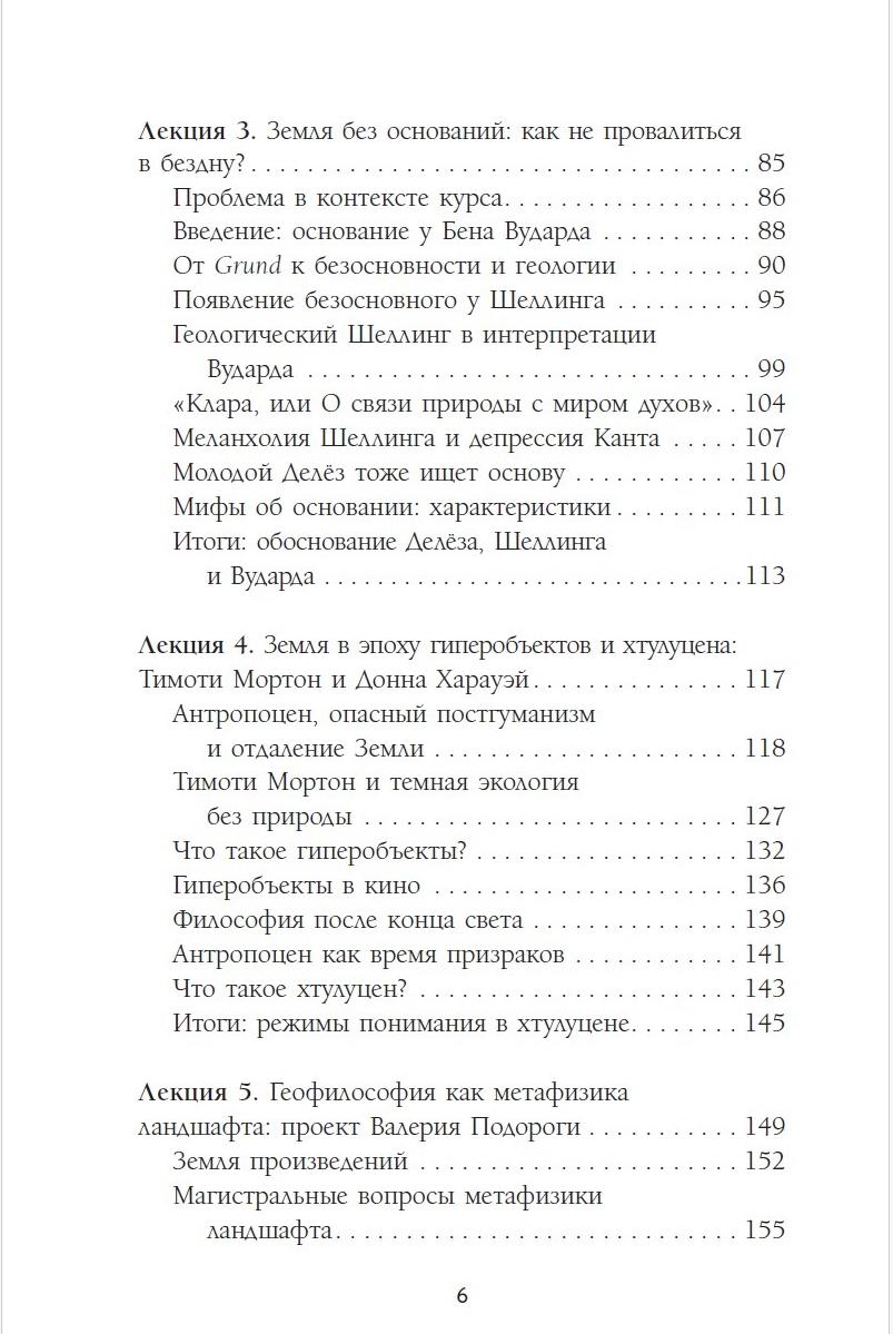 Знакомство с ключевыми концепциями геофилософии — безосновностью, метафизикой ландшафта Подороги, темной экологией и гиперобъектами Мортона, хтулуценом Харауэй, теорией Гайи Лавлока и Латура, Хтонией Агамбена и политической Землей Шмитта — даст понимание, что земля — это не фон для жизни человека и не природа, куда можно поехать отдохнуть в выходные.