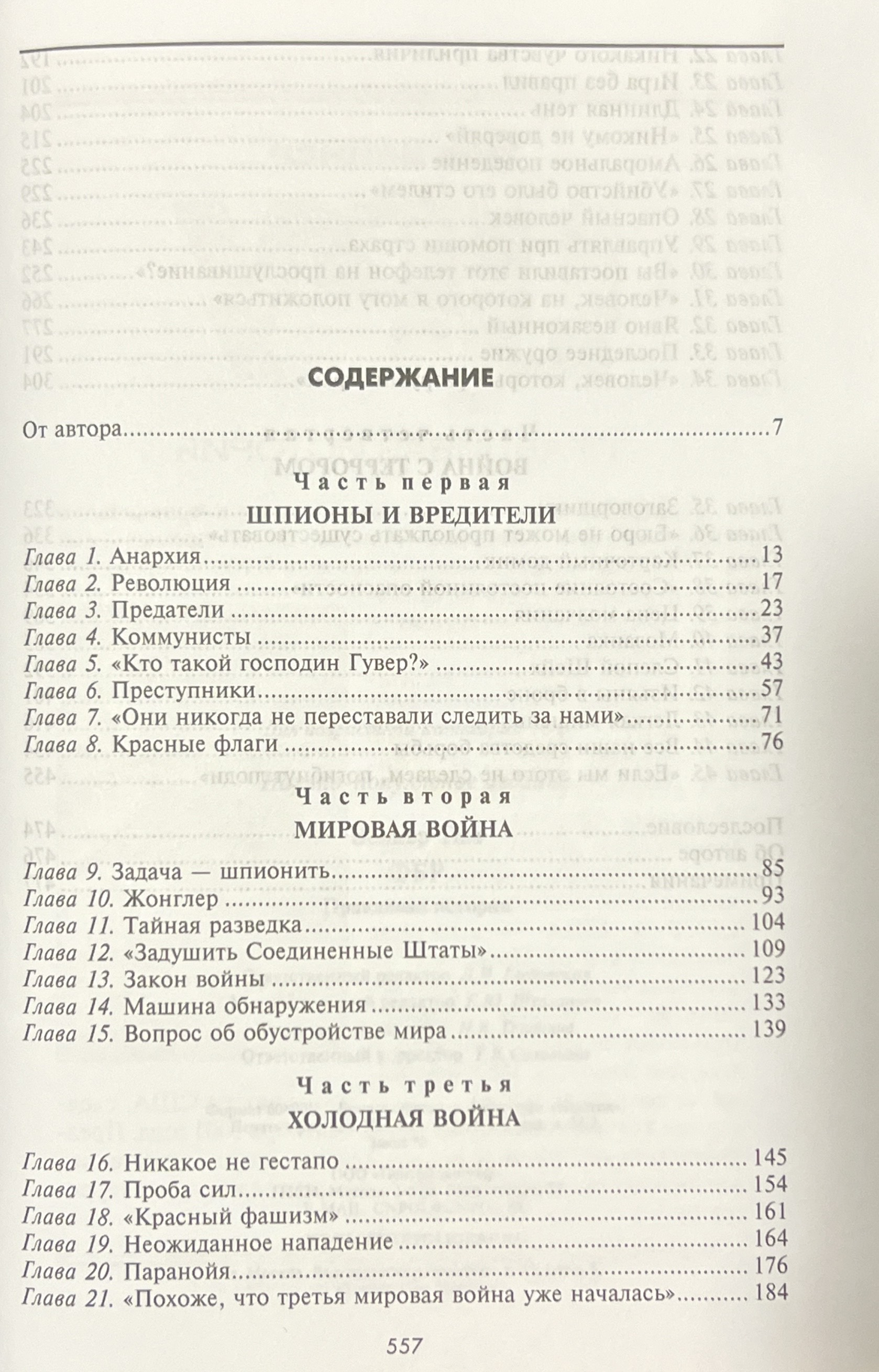 Опираясь на рассекреченные в последние годы досье, автор представляет в истинном свете отца-основателя ФБР Дж. Эдгара Гувера. Рассказывает, как создавалась и совершенствовалась агентурная сеть. Как Гувер выполнял почти немыслимые задания: осуществлял слежку за руководителями Советского Союза и Китая в самый мрачный период холодной войны, контролировал государственные перевороты против демократически избранных лидеров иностранных государств, искусно дестабилизировал положение президентов Соединенных Штатов. Как вел политическую войну и управлял государственными делами в целях национальной безопасности, зачастую действуя в ущерб морали.