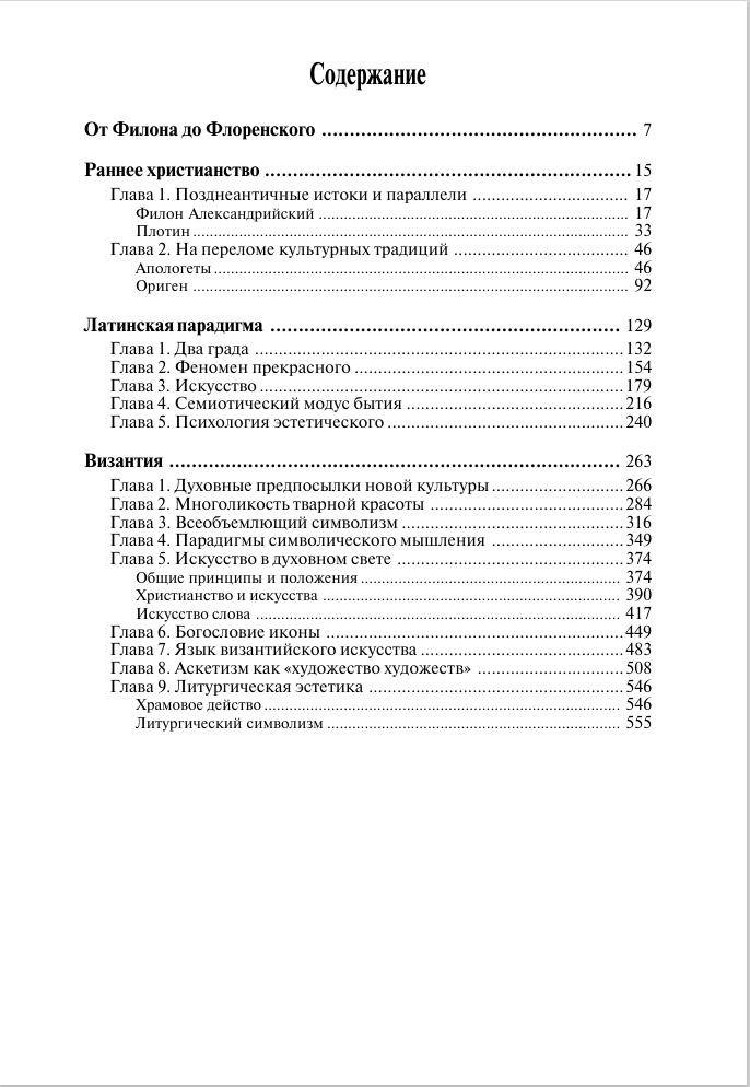 В книге анализируется совокупность таких феноменов, как христианский символизм (понимание образа, символа, аллегории, знака), антиномизм, концепции духовного эроса, творения и творчества, прекрасного и искусства; актуализация пространственно-временного континуума в искусстве; много внимания уделено таким феноменам, как икона (ее богословие, философия, художественный язык), эстетика аскетизма, литургический синтез искусств и др.