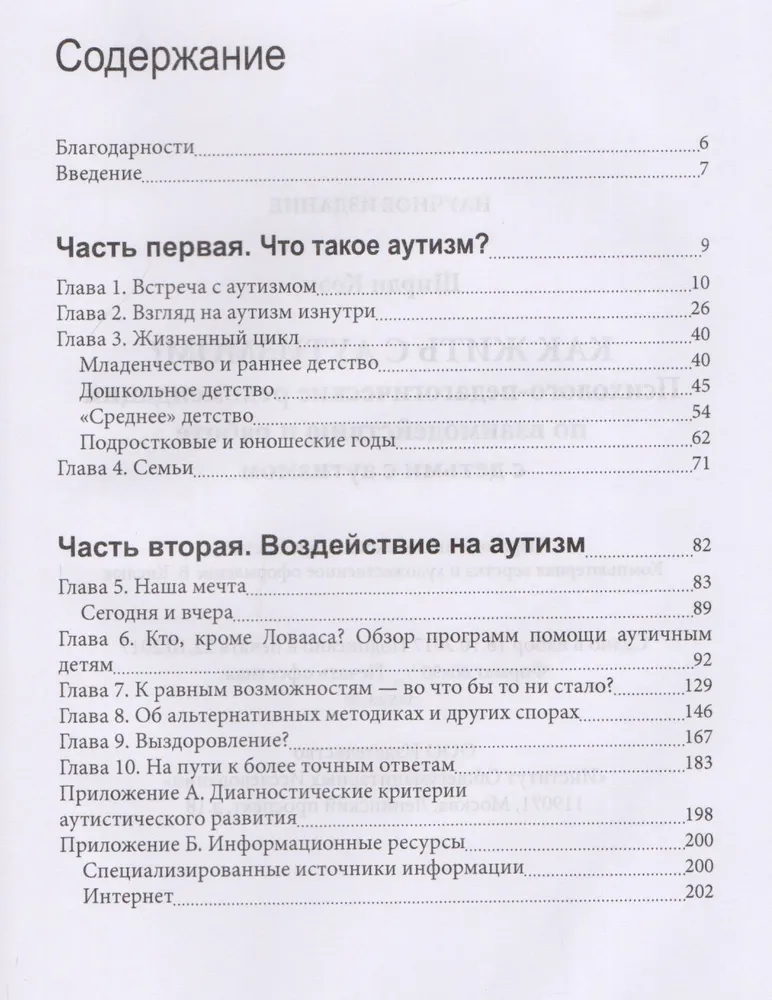 Эта книга не является справочником или детальным руководством. Она больше похожа на карту, которая позволит родителям, педагогам и клиническим специалистам ориентироваться в "мире аутизма". При написании этой работы использовались новейшие данные и разработки.
