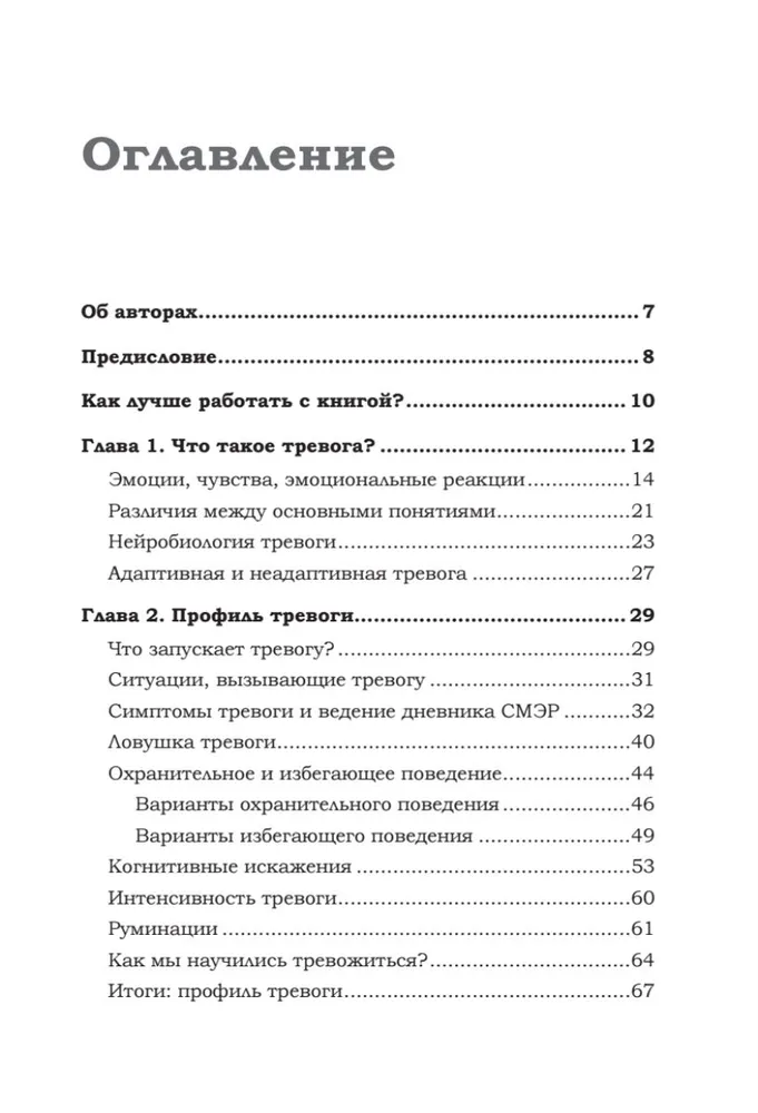 Авторы, как практикующие специалисты, собрали самую актуальную информацию для вас, они расскажут о нейробиологии и причинах тревоги, самопомощи, поговорят о видах тревожных расстройств, лечении, профилактике рецидива и выборе специалистов.